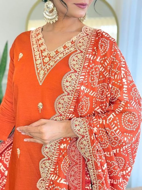 Mustard Embroidered Straight Kurta Trouser With Dupatta Set