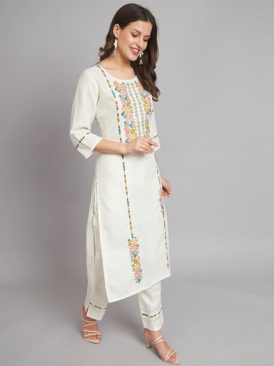 Styling: Embrace the global appeal of this cotton suit design latest kurta by pairing it with non-traditional elements. Wear the kurta as a tunic over a pair of skinny jeans or white trousers for a high-fashion look. The trousers from the set can be