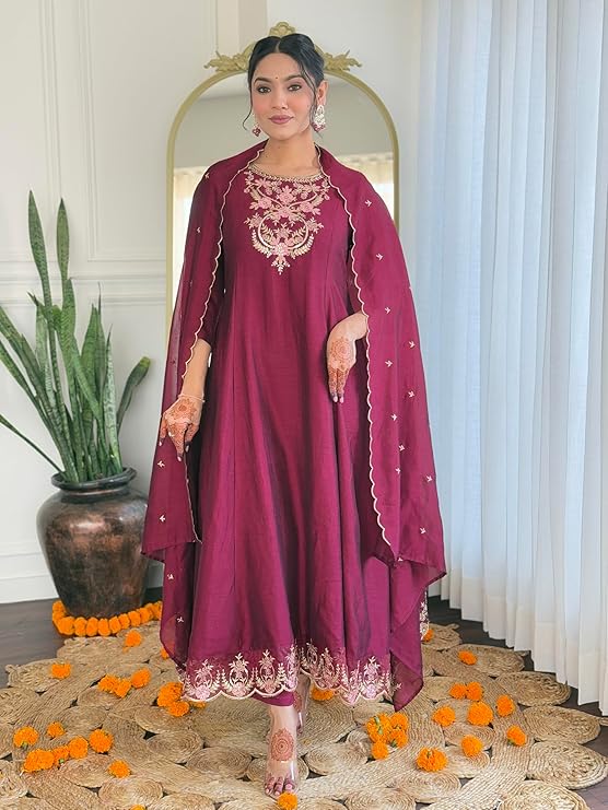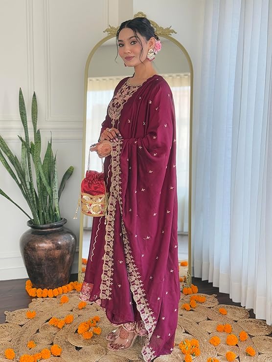 This specific set—with its Vichitra Silk kurta and dupatta, Rayon pant, and exquisite embroidery—is more than just an item of clothing. It is a celebration of femininity, culture, and art. It is a testament to the fact that true style lies in the details: the choice of fabric, the skill of the embroidery, the precision of the cut, and the wisdom of the care instructions.