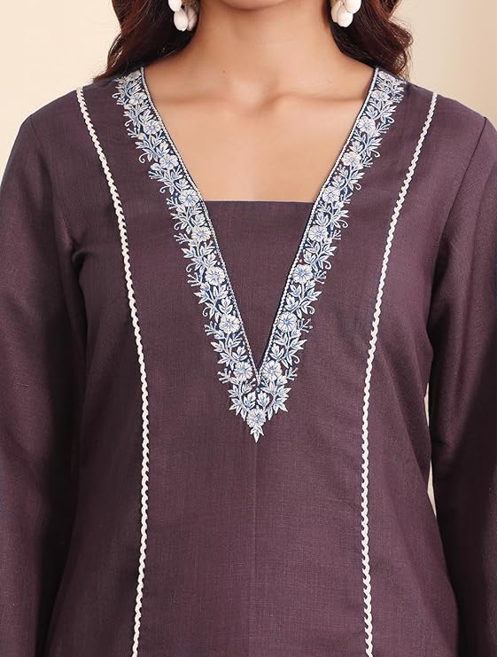 elasticated waist, they offer freedom of movement and a forgiving fit that makes you feel completely at ease. The solid pattern in the same rich Wine color ensures the focus remains on the beautifully embroidered kurta, creating a balanced and harmonious look.