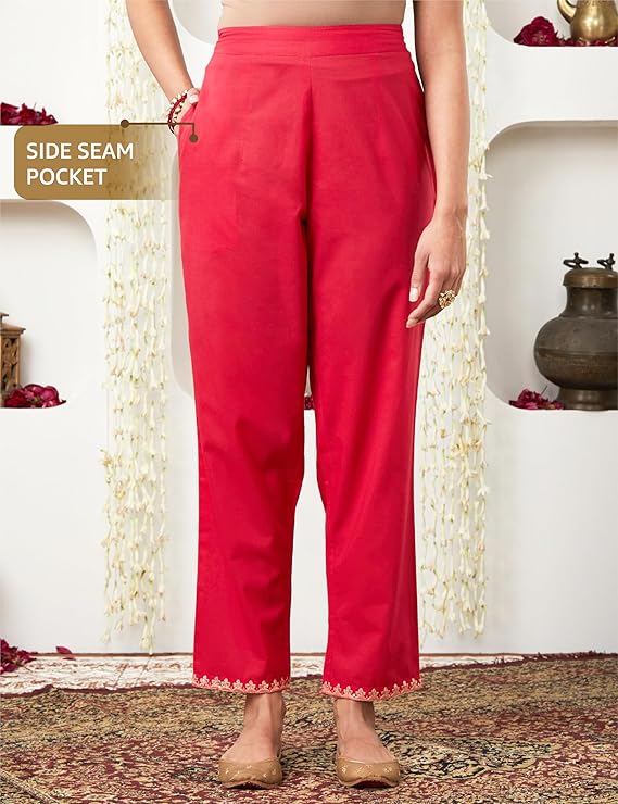is a blessing for comfort, accommodating slight fluctuations in fit and allowing for easy dressing. The embroidery at the hem is a signature detail that completes the look of the traditional Indian outfit, ensuring that even the smallest element is considered. This attention to detail prevents the pyjamas from appearing plain and creates a harmonious