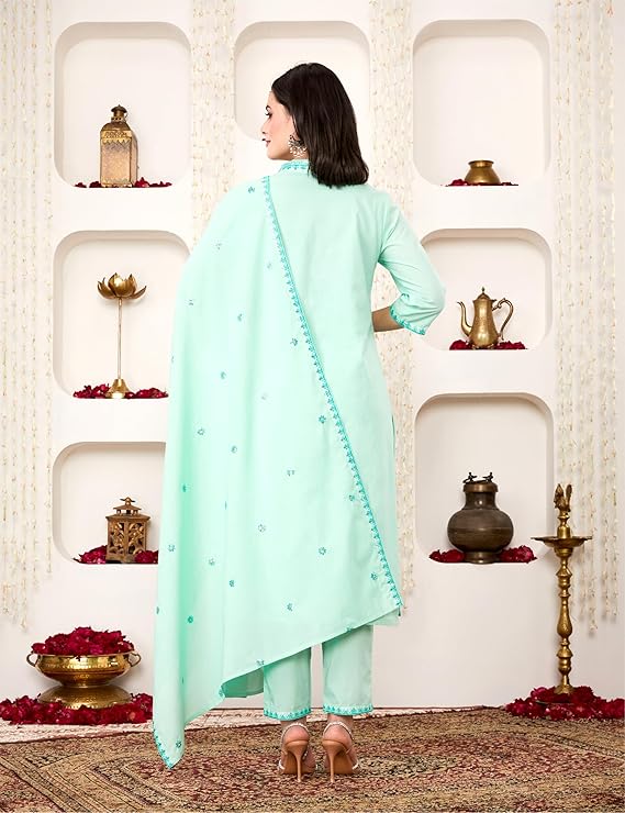 Women’s Embroidered Cotton Kurta Pant Set with Dupatta